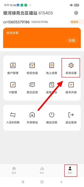安装喵站,登录后点击“我的”,进入“系统设置”。
