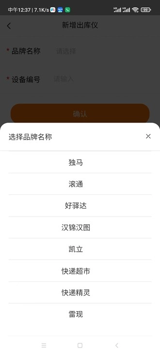 挑选出库仪品牌,填写设备编号(推荐使用手机号后8位)。