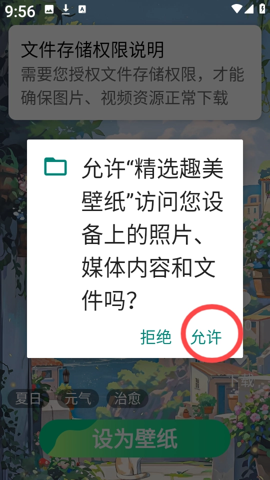 首次使用需允许相关权限,保障壁纸正常与保存;