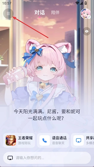 打开逗逗游戏伙伴,点击左上角汉堡菜单