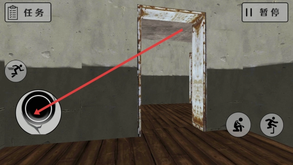 用左边的摇杆操控移动,在各个房间里仔细搜寻道具,收集所需的物资来应对可能出现的危险,点击任务按钮查看当前目标。