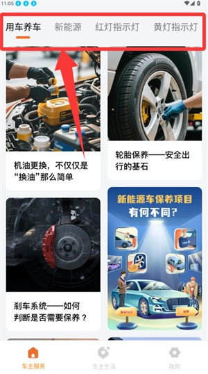 在主页面分类标签中,可浏览相关养护服务信息。