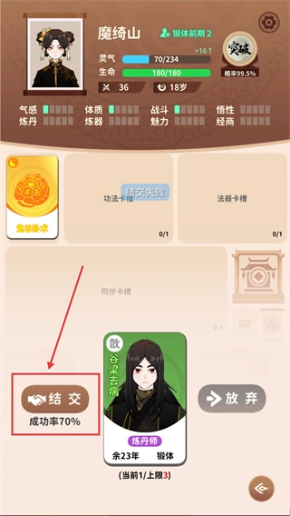 在结交道友的过程中,要重视结交的成功率。可以借助开卡包来提升自身的魅力属性,这样能有效增加结交成功的概率。建议尽早组建起自己的道友团队,以此打破发展的桎梏。