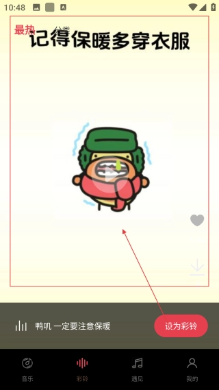 在彩铃页面,你可以通过点击【设为彩铃】来完成彩铃设置,同时也能查看相关的热度数据。