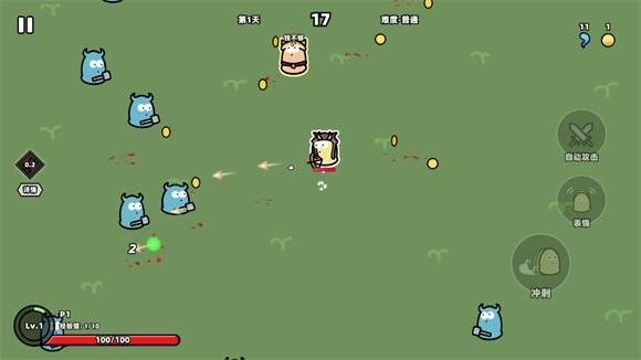 所有选项都确定好之后就会正式启动,滑动屏幕能够操控角色移动,点击右侧的攻击按钮就可以自动发起攻击。