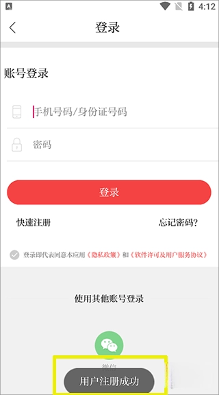 当黄色方框内的提示出现后,就可以填写之前注册过的账号了。