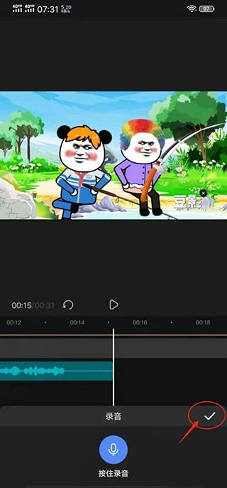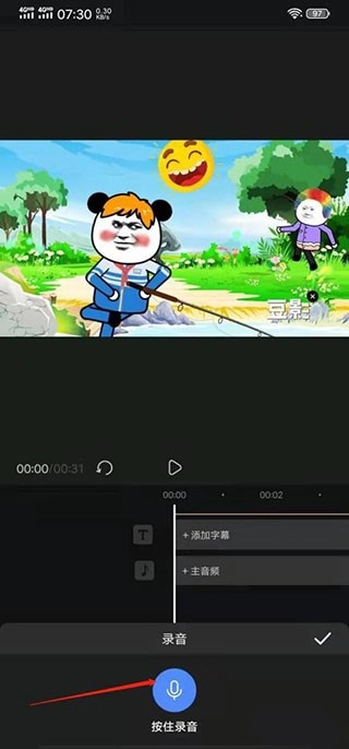 按住录音按钮图标,开始录音,即可为视频配音。
