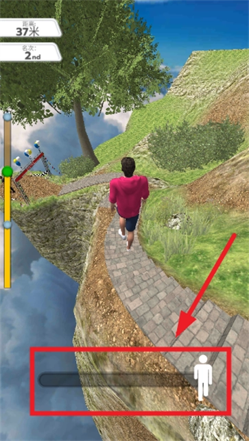 屏幕下方的操作区域能辅助玩家控制角色转向,以此应对曲折的地形。途中会碰到各类障碍,还能把对手挤下悬崖,只有抵达终点才算是胜利。