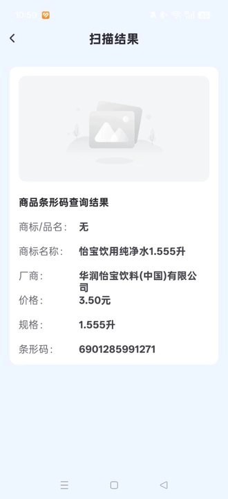 扫描结果会清晰呈现,涵盖商标名称、生产厂商、产品价格和规格参数等信息,说明十分详尽。