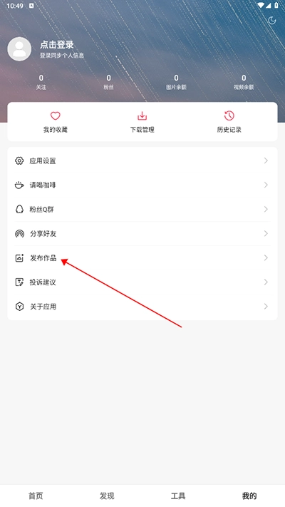 在“我的”界面内点击发布作品;