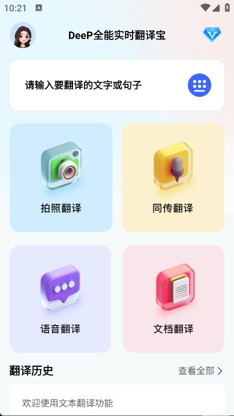 DeeP全能实时翻译宝是一款功能强大的翻译工具软件,它融合了文本翻译、语音识别翻译与拍照扫描翻译等多种翻译功能,能够满足用户在不同场景下的翻译需求。无论是日常交流、商务会议还是旅行中的即时翻译,它都能提供高效、准确的翻译服务。该软件不仅操作简便,而且翻译速度快、精度高,让用户能够轻松实现与外国友人的无障碍交流。推荐有需要的用户使用。