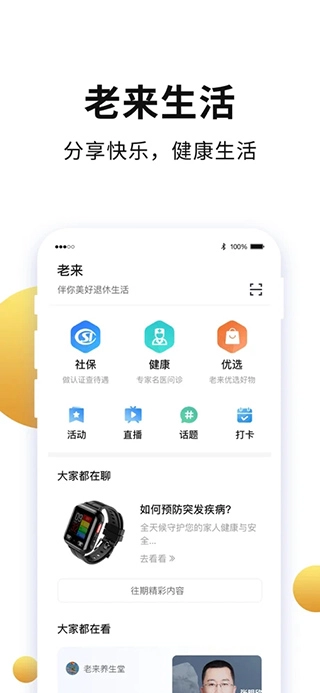 老来网最新版本是一款专门面向老年人打造的全方位养老服务手机应用,整合了健康管理、社交互动、生活服务等丰富功能,旨在让老年人的生活更便捷、舒适且充满乐趣。