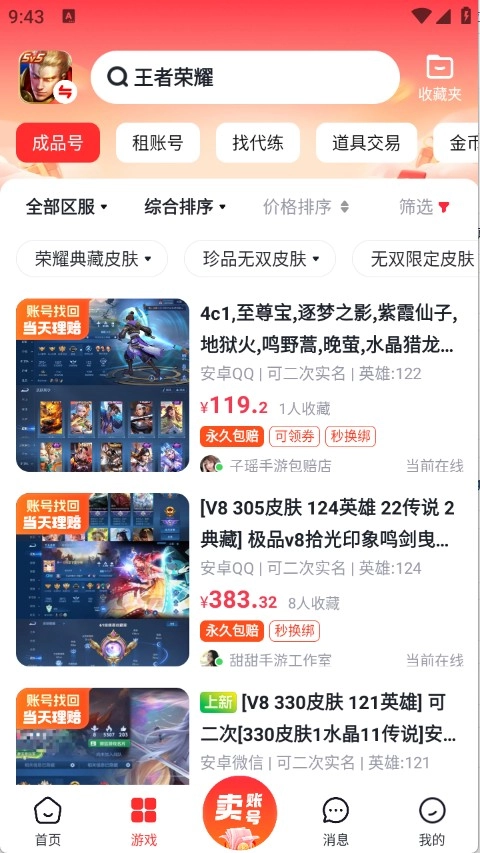 从游戏类型、商品种类、价格区间等多个维度进行分类,助力买家迅速找到所需商品。