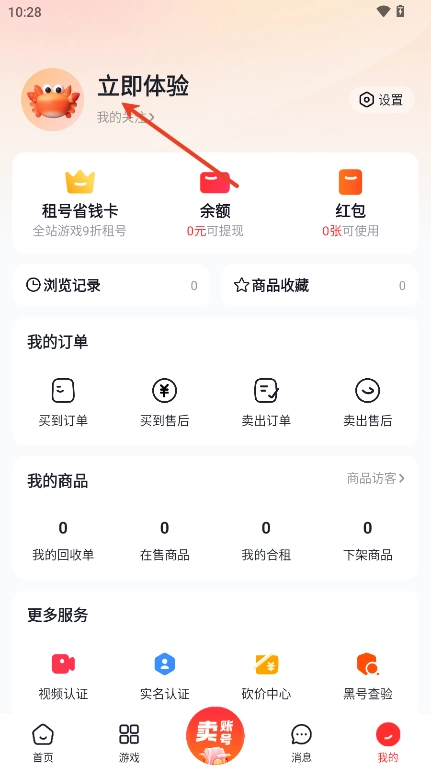 在个人主页,点击【立即体验】