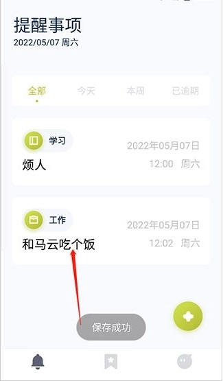 点击保存后,系统会自动跳转至提醒事项界面,在该界面中我们能够看到刚才设置好的提醒事项。