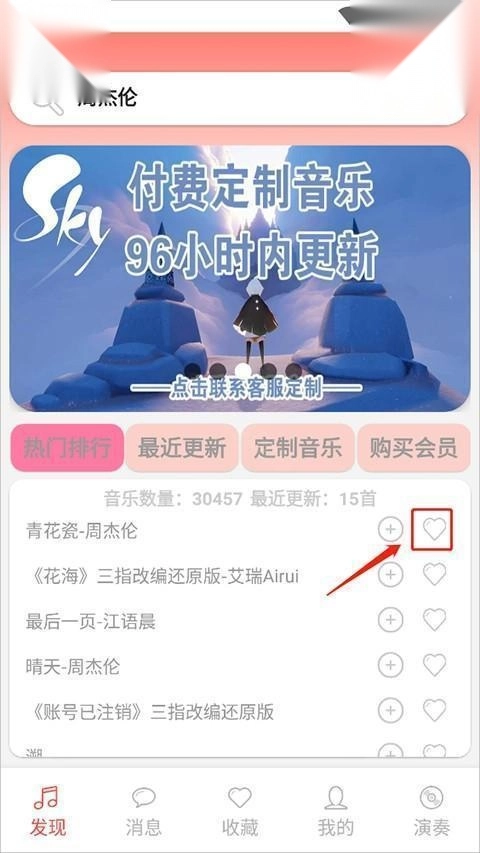 点击旁边的爱心就可以将这个歌曲进行收藏起来。