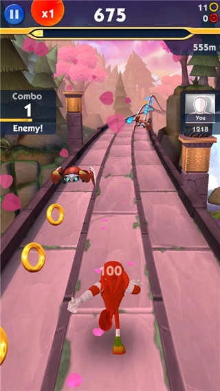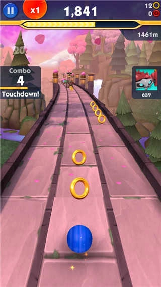 和经典跑酷游戏《神庙逃亡》比起来,《索尼克冲刺》有着更绚丽的3D场景,还采用了和《熊大快跑》相似的三条跑道设计!