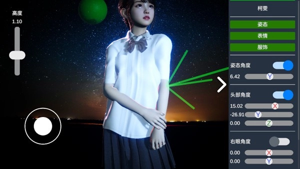 进入“表情”板块进行更细致的调整,可以修改角色的眼睛形态、手指摆放角度、嘴巴形状以及眉毛样式等细节。