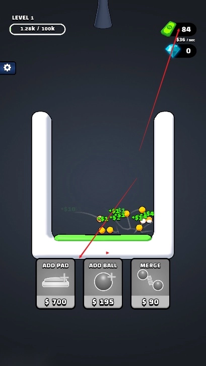 策略与趣味交织:合并小球能增加收益,使用弹跳垫要把握时机和精准度,把策略性融入趣味玩法里,使玩家在轻松游戏时体会策略带来的成就感。