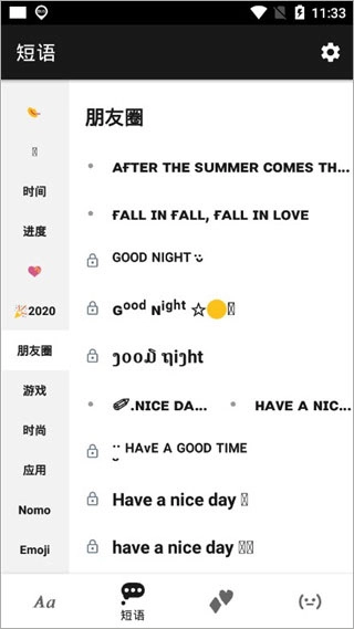 进入 后,可开始查看平台推送的各类文字样式;