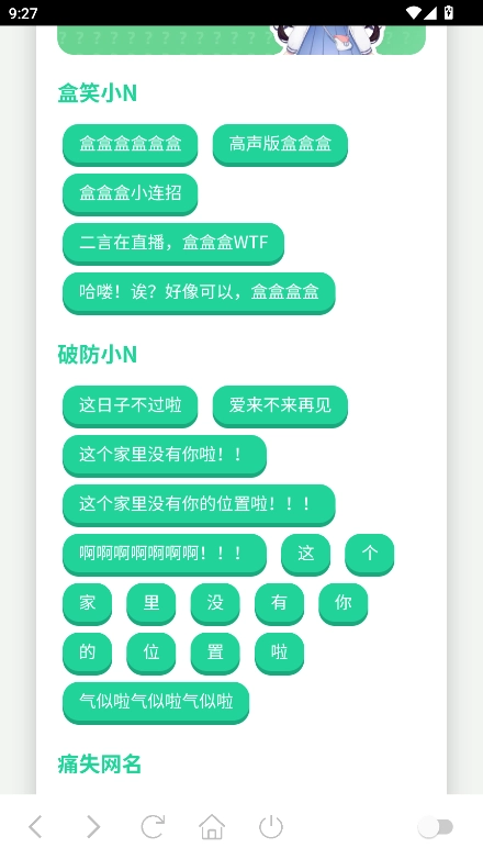 首先你需要在本站安装并打开最新版的小N语音盒,进入首页后能看到众多板块音效,像盒笑小N、破防小N之类的都在其中。