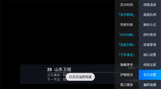 接着点击“显示网速”选项,这样就能在界面上看到当前的网速显示了。