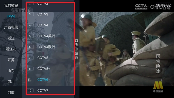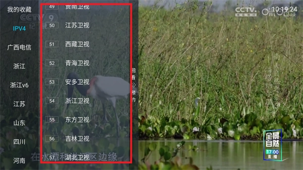 点击频道,左侧会弹出电视直播频道