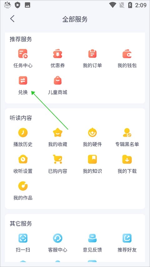 打开喜马拉雅少儿应用并完成登录操作,随后进入家长页面,找到并点击页面中的【查看全部】按钮(即下图绿色箭头所指向的位置)。