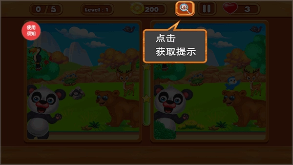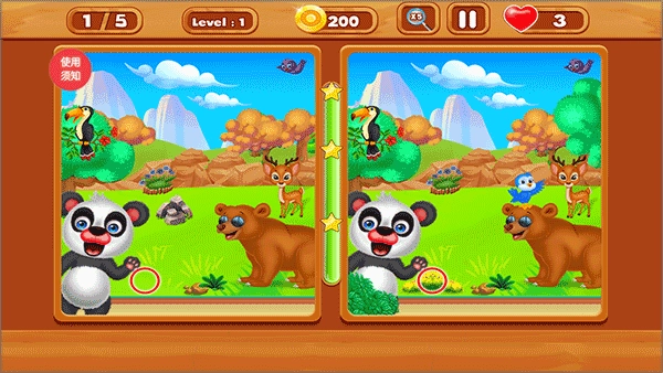 进入游戏后,图中所呈现的是本局游戏里需要找出的不同之处的数量。