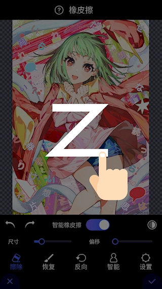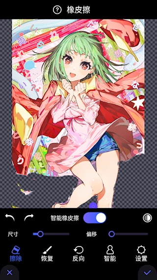 导入图片后,使用橡皮擦工具涂抹背景时,能够对其尺寸和偏移进行调整。
