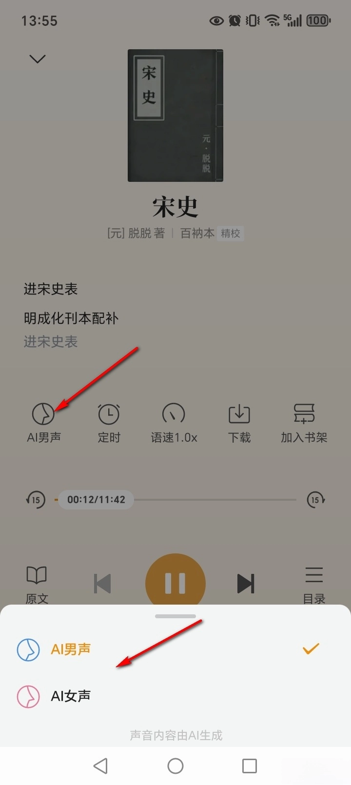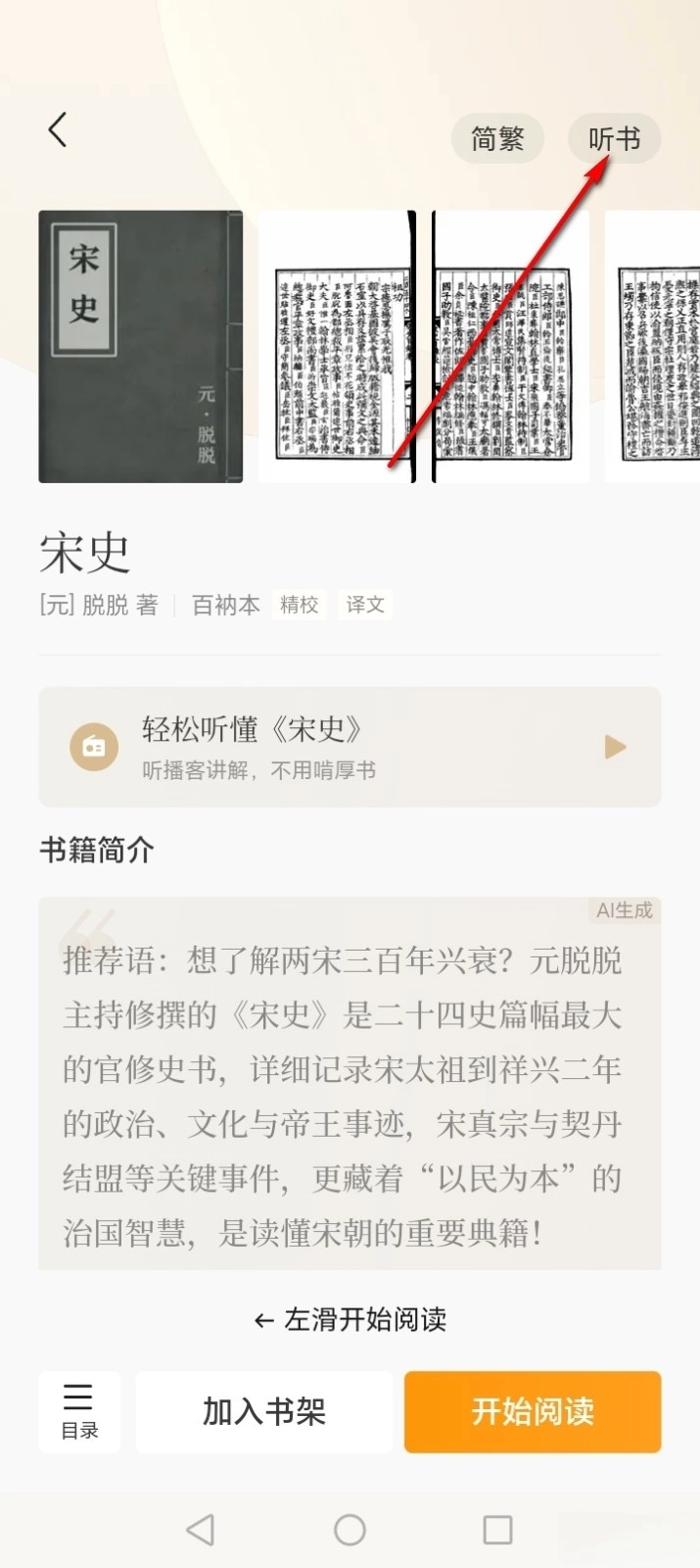 点击【听书】