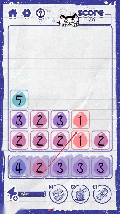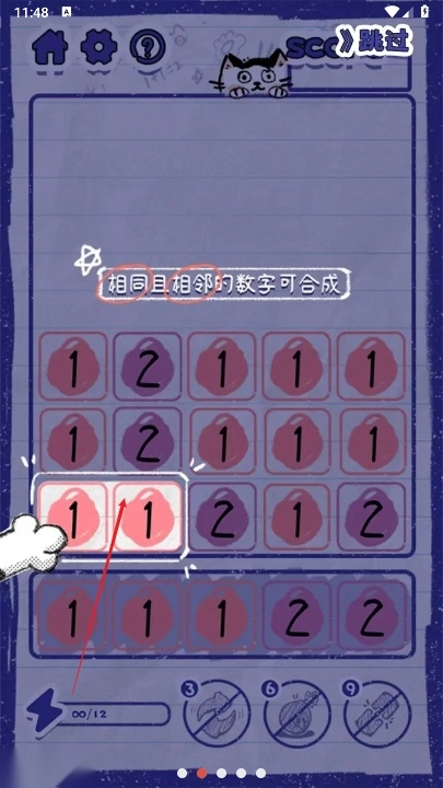 在《喵野数字》这款游戏中,玩家的目标是把相同的数字合并,一步步积累出更大的数字,直到合成出20这个数字。每次合并操作都会生成能量,能量在游戏里是相当关键的资源。所以你得仔细规划合并的策略,不然数字排列得太杂乱就会导致游戏失败。