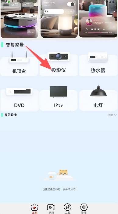 在首页的“我的设备”区域,点击“投影仪”按钮,即可进入设备品牌的选择页面。