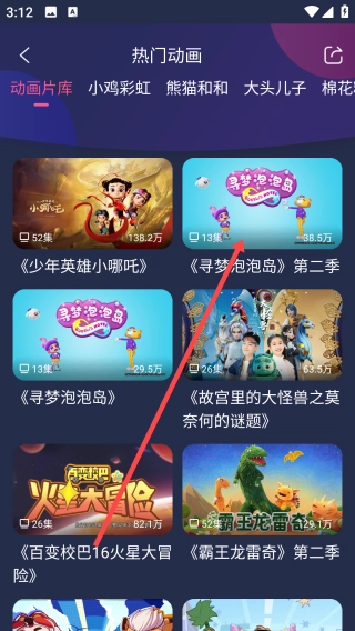 打开央视少儿,点击【热门动画】