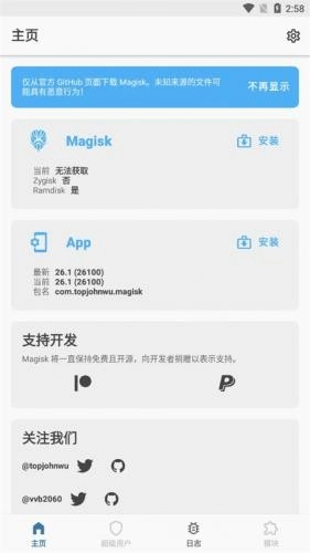 支持安装Magisk模块。