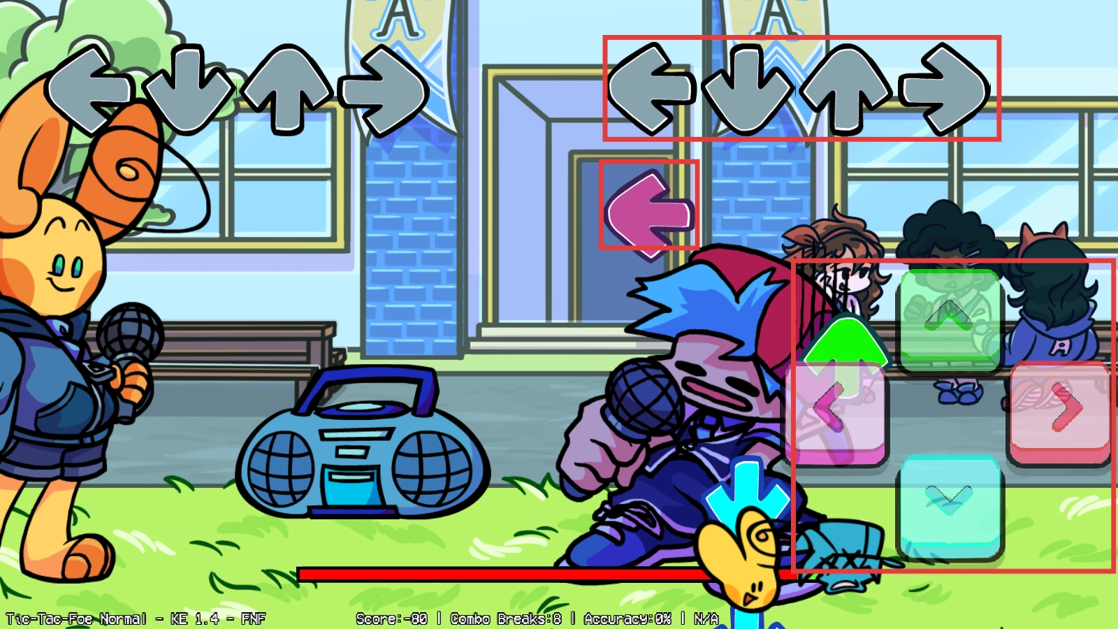黑色星期五之夜高中模组是一款以校园生活为背景的节奏点击类游戏,不仅充满挑战乐趣,还设计了多种趣味挑战关卡。玩家可以带领角色参与友谊赛,不同的音乐模式对应着各异的挑战体验,让大家在熟悉的学校场景里尽情享受游戏过程,趣味性十足。游戏以节奏点击为核心玩法,搭配可爱的卡通风格画面,操控方式简单易上手,同时玩法内容丰富多样,为玩家带来轻松又刺激的节奏对决体验。