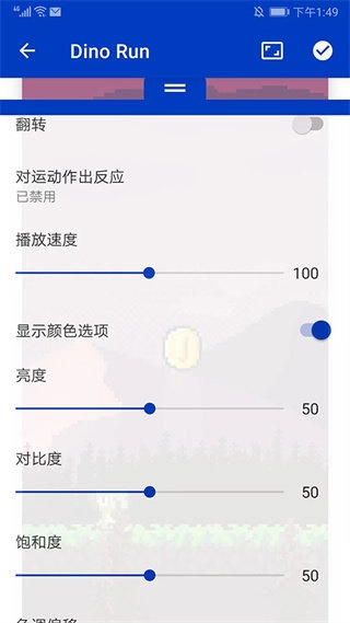 2、进入壁纸动态预览界面,选择下方【两条杠】图标,可进行翻转、播放速度、亮度、对比度、饱和度等设置修改,