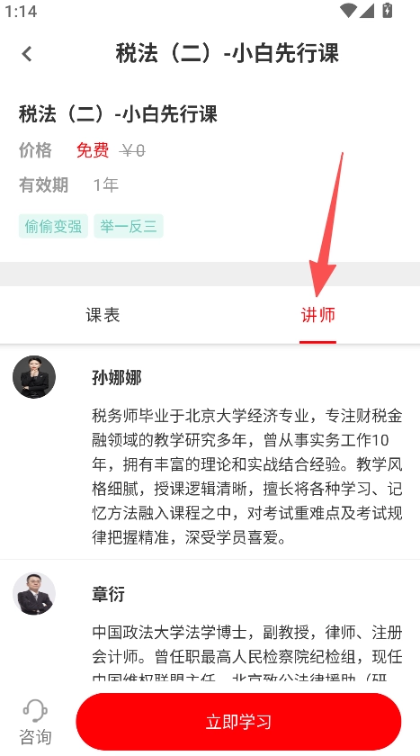 我们将讲师介绍与课表功能进行了整合,这里的讲师背景信息详实全面,课表安排也清晰明了,能够帮助考生更好地了解教学团队的情况以及自身的学习进度。