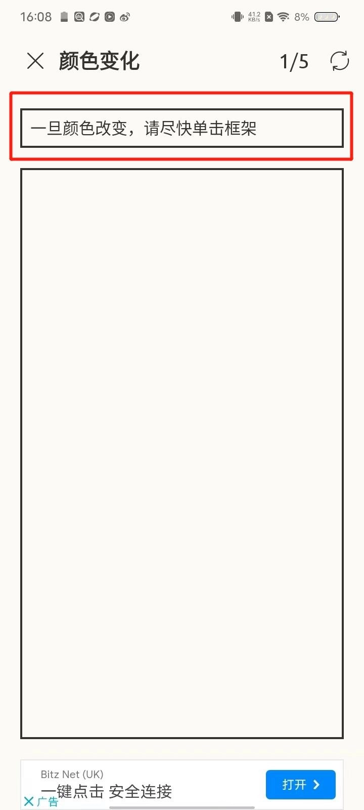 点击第一个练习项目【颜色变化】,按照上方给出的目标完成相应操作,以此进行反应判断练习。
