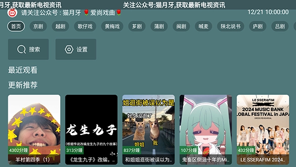 爱尚戏曲是一款专门为戏曲爱好者打造的电视端戏曲盒子应用。在这个应用里,您能够尽情畅享海量戏曲视频资源,无论是经典传统剧目还是最新推出的作品,都可以免费在线观看收听。它与电视端完美适配,让您足不出户就能沉浸在戏曲的独特魅力之中。