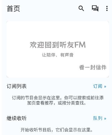 进入主页显示订阅列表、继续收听、收藏等