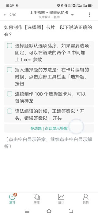 首先添加需要学习的卡组,第一组卡组软件已经为新手预先准备妥当。