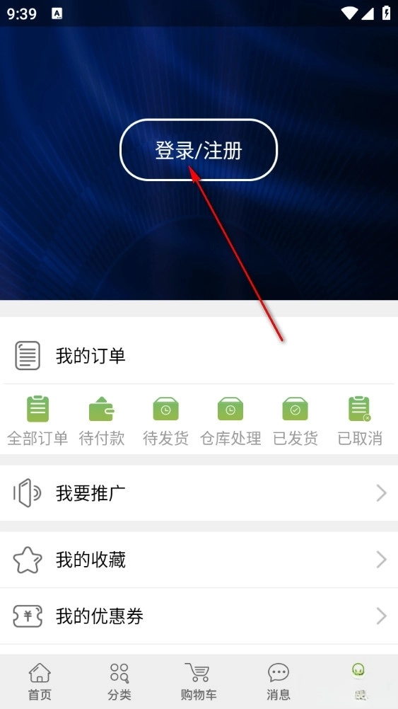 打开软件点击下方个人中心再点击登录/注册