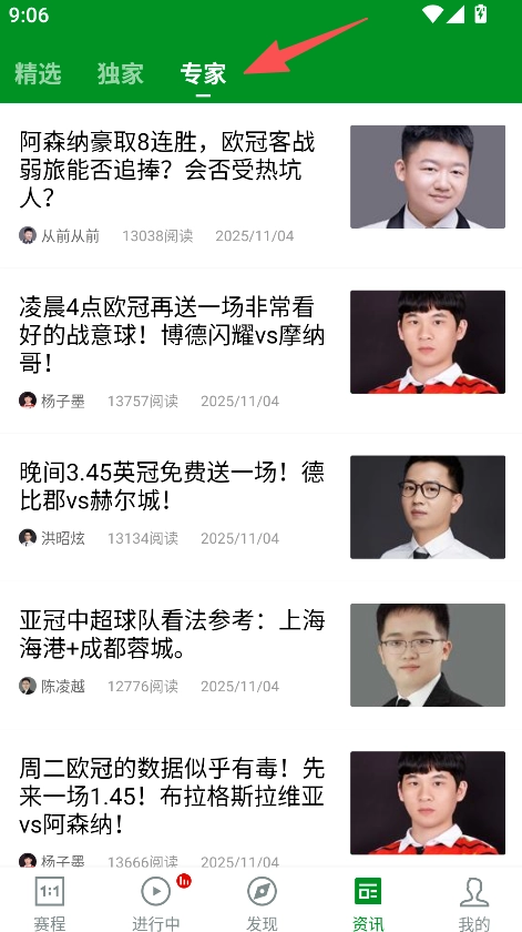 围绕体育赛事资讯展开内容,设置资讯板块并划分为精选、独家、专家三大类别,呈现赛事分析内容,涵盖对阵情况与专业看法,以此满足赛事爱好者的信息获取需求。