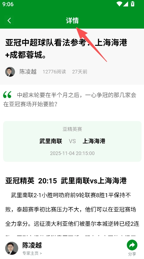 支持赛事内容详情查看功能,用户选择对应分析内容后,即可进入详情页获取具体赛事信息。