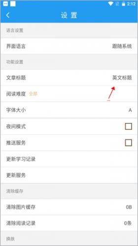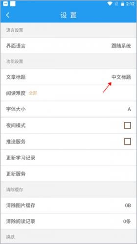 3、会看到其中有一个功能设置,看到默认是中文标题,点击一下文章标题;