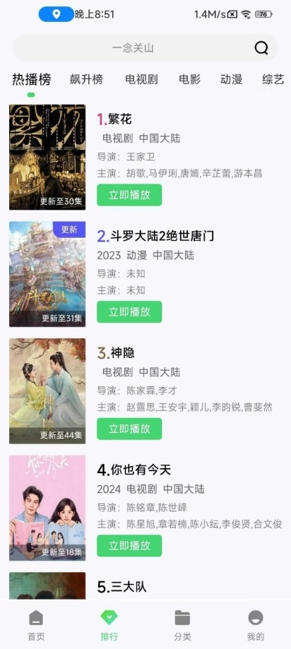 最后点击下方的“排行”按钮,就能看到依据全网热度实时汇总生成的影视排行榜单