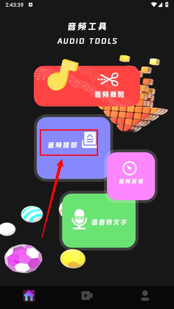 进入主页,点击"音频提取"。