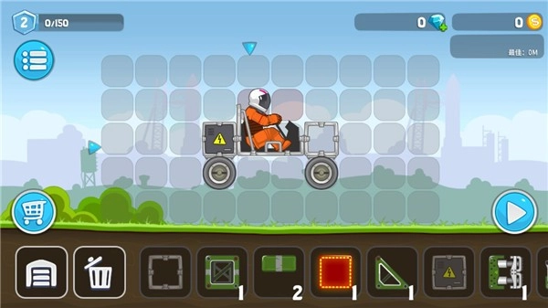 改造好赛车就能出发啦,左边是刹车,右边是油门——要是车头翘起来就踩刹车,车尾翘起来就踩油门。我们的目标很简单,就是操控赛车在能量用完之前冲到终点,就这么回事儿。