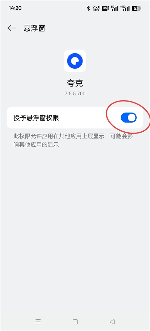 找到手机中的夸克,授予悬浮框的权限。